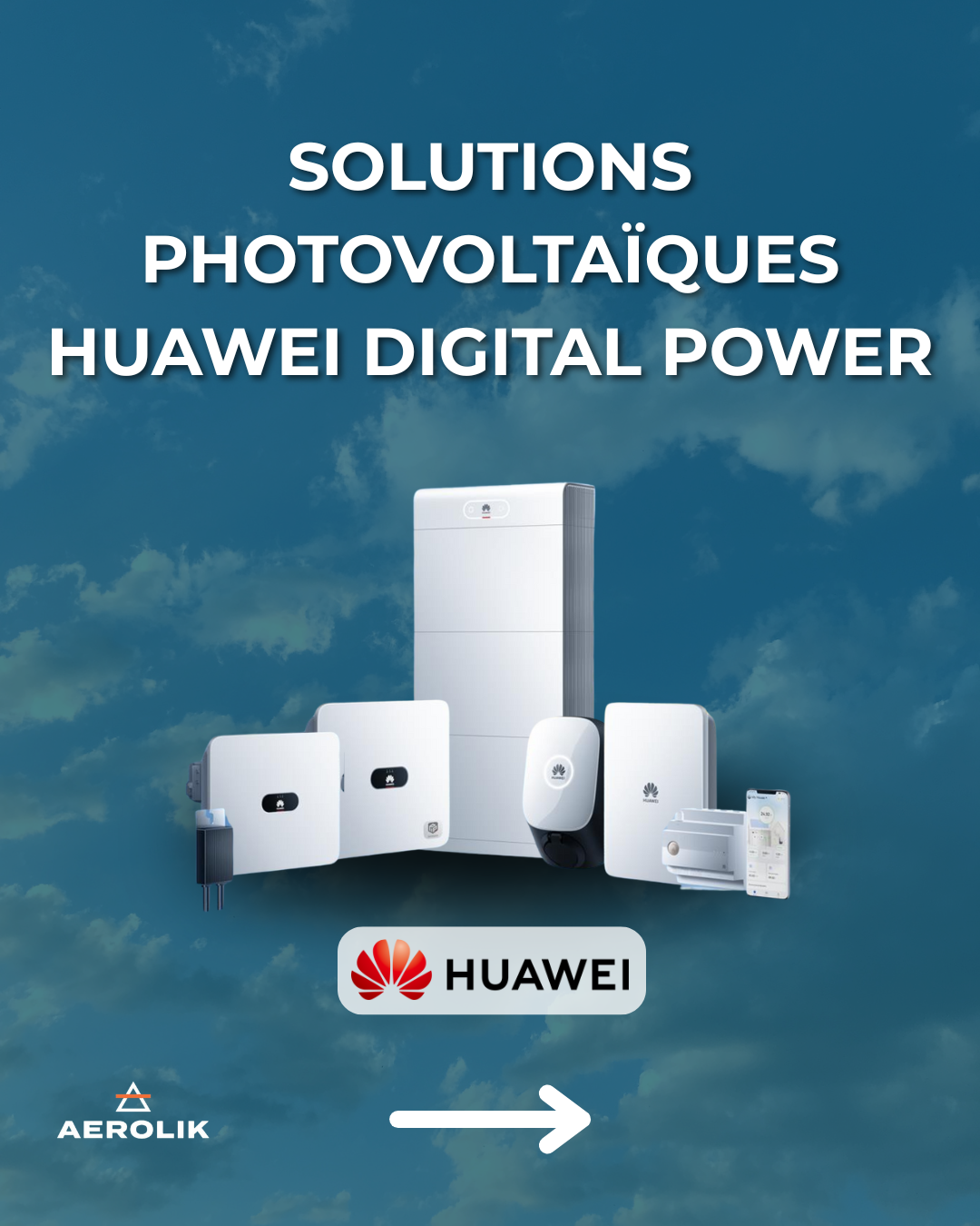 Conception d'une stratégie de communication et de supports promotionnels pour le lancement de la gamme photovoltaïque Huawei lors d'un événement professionnel organisé par Aérolik.