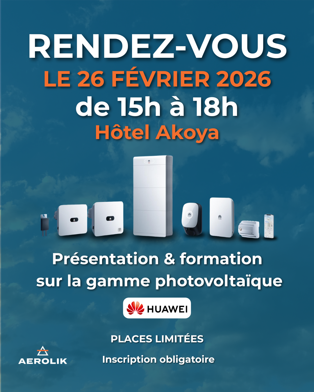 L'entreprise Aérolik souhaitait accompagner l'intégration d'une nouvelle offre photovoltaïque Huawei en organisant un événement de lancement destiné à présenter les solutions aux entreprises du secteur.
